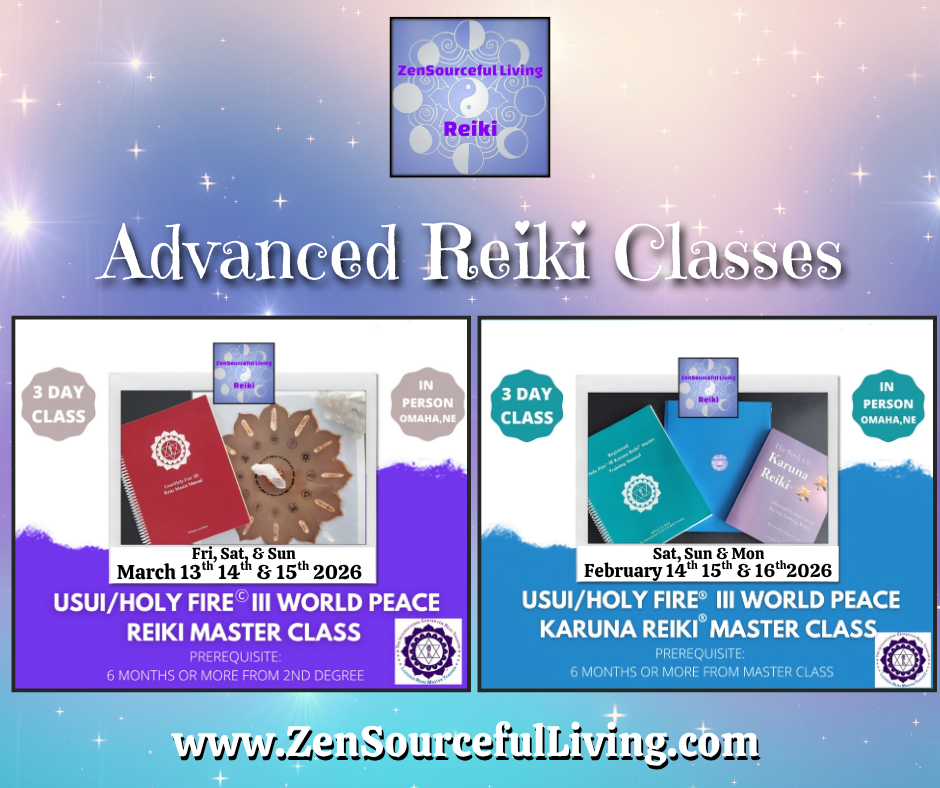 ZenSourceful Living Reiki offers in person classes in Omaha, NE and other areas and Online Live classes via Zoom. Choose the class below for dates and details.
