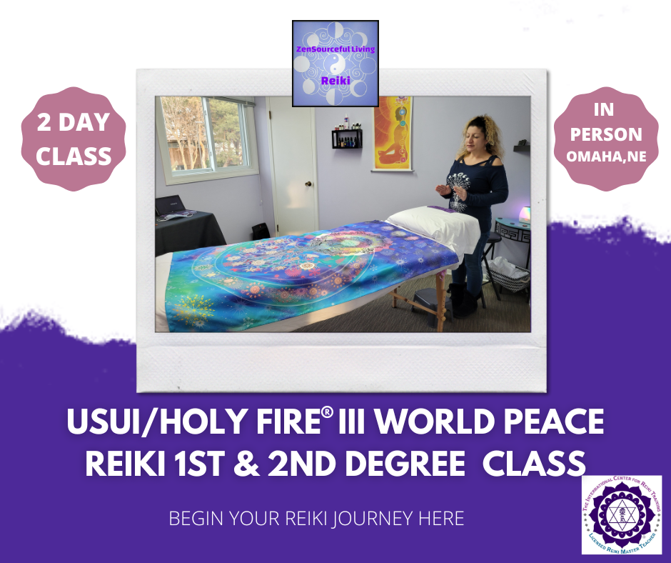 Our next Usui/Holy Fire III World Peace REIKI 1ST & 2ND Degree (Self Reiki, Advanced Self Reiki & Practitioner Certificate) Class, will be Friday & Saturday February 27th & 28th 2026, 9am to 630pm at our Omaha, NE location.